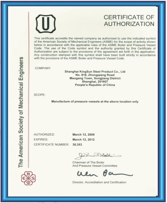 ASME“U”钢印设计制造资质
