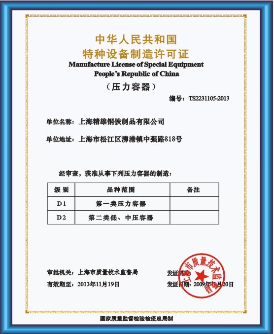 D1,D2压力容器制造资质
